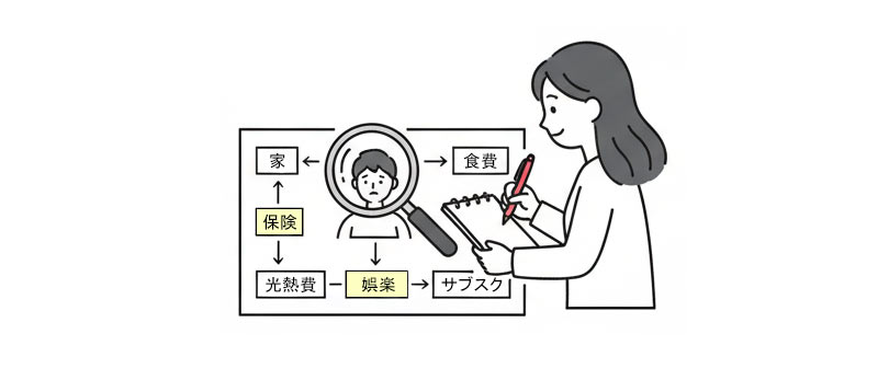 内容:高いスマホ代、不要な保険、使っていないサブスクなど